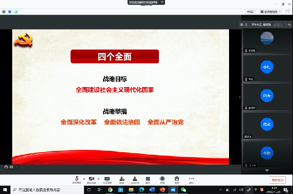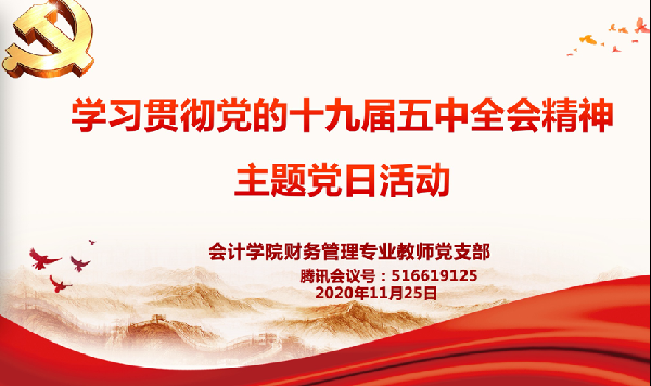 11月25日下午,tcy8722太阳集团财务管理专业教师党支部举行“学习贯彻党的十九届五中全会精神”主题党日活动。校党委书记李世平,tcy8722太阳集团副院长、党委委员谢何融,财务管理专业教师党支部书记吴向阳以及支部全体党员参加会议。活动通过腾讯会议开展,由支部书记吴向阳主持。