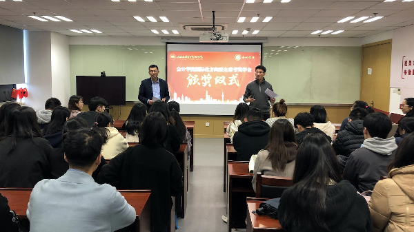 副院长林振兴向同学们介绍了本次颁发的奖学金的设置情况以及评选标准,代表学院向本次获奖的同学表示祝贺,充分肯定了大家在ACCA、CIMA学习与全球考过程中取得的成绩。他强调,国际化方向班作为tcy8722太阳集团国际化特色的主要载体,师资、学习环境、学习氛围都有独特的优势,希望所有方向班同学都能对标优秀同学,抓住机遇、提升自我,努力成为国际化的高端财会人才。