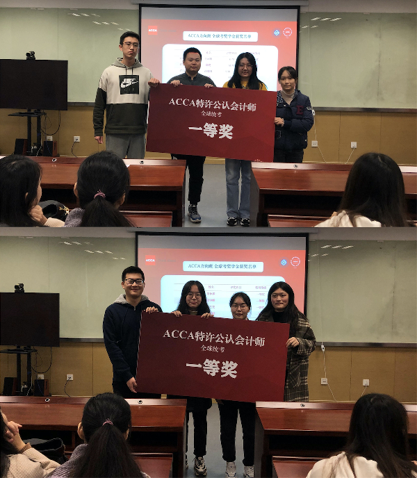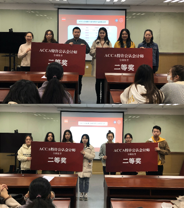 本次颁奖仪式上,共计61人次获得ACCA全球考奖学金,35人次获得CIMA全球考奖学金。其中,朱秋霖同学两次获ACCA全球考特等奖奖学金,付润田等9名同学获ACCA全球考一等奖奖学金,俞芸洁等11名同学获ACCA全球考二等奖奖学金,郑大宇等37名同学获ACCA全球考二等奖奖学金;周圣链同学获CIMA高级阶段奖学金,纪亚茹等34名同学获CIMA中级阶段奖学金。