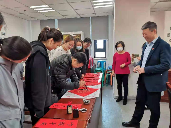 师生们还共同书写春联,寄托对新年的期许和祝愿,为新春送福。会议结束后,师生们前往食堂共进午餐。随后,学院领导和老师们前往学生寝室走访慰问,并为留校学生贴春联送祝福。