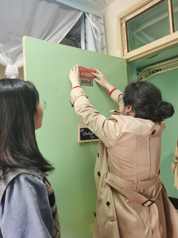本次党员宿舍挂牌对象为2020年12月发展的25名2018级学生党员,涉及5个学生党支部,25个学生宿舍。夏昱首先对学生党员宿舍卫生环境、物品收纳、文化风气等提出表扬,她希望学生党员能够继续保持,以自身实际行动带头营造健康文明、积极向上的宿舍氛围。她强调,党员宿舍不是一项短期的形象工程,而是一份长期而艰巨的任务,一方面要牢固树立党员意识,时刻为身边同学服务,为群众做实事;另一方面则要接受广大学生的监督,积极带动并提升寝室环境及文化内涵,发挥“我是党员做先锋”的示范性,以实际行动庆祝中国共产党建党一百周年。